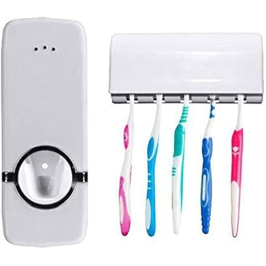 Automatic Toothpaste Dispenser and Toothbrush Holder Set (5 Brush Holder)